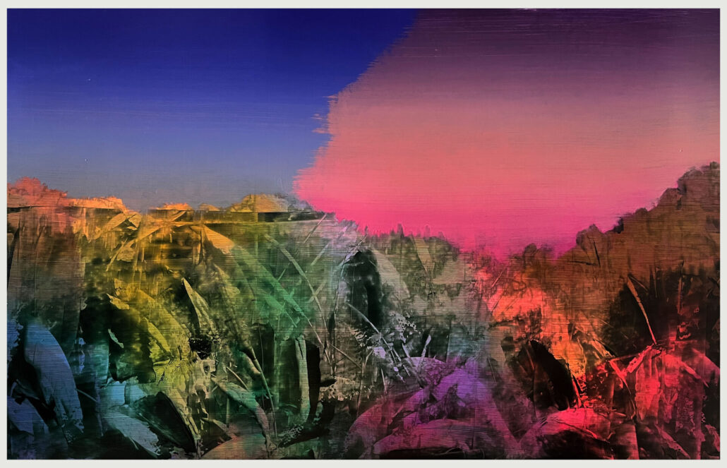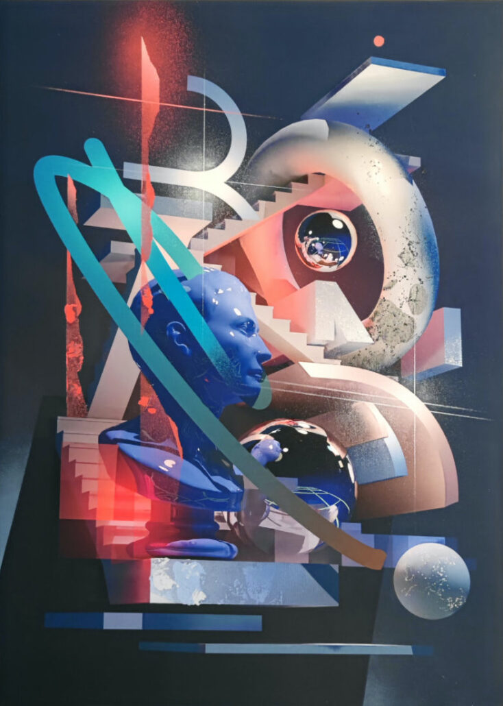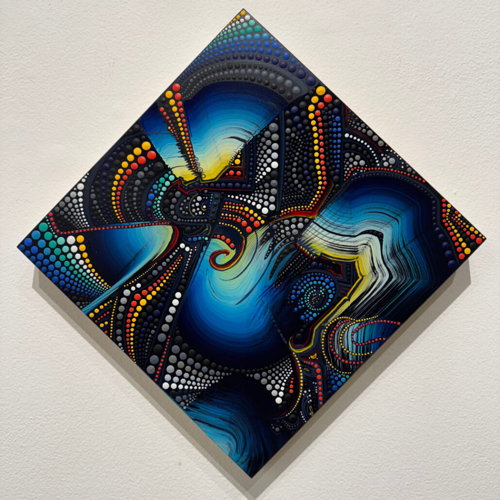 In a world increasingly defined by extremes, The Knife’s Edge, exhibition invites viewers to linger between the sharp, often visible space of survival and harmonious existence. The show features 28+ artists who represent unique perspectives through their work exploring provocative abstract and futuristic visions.
