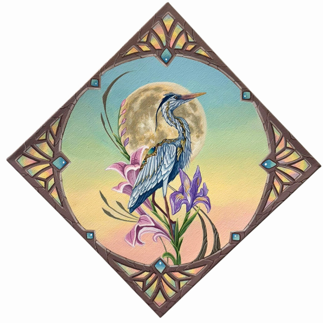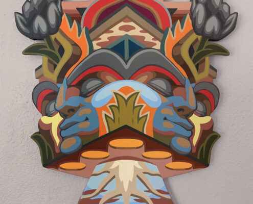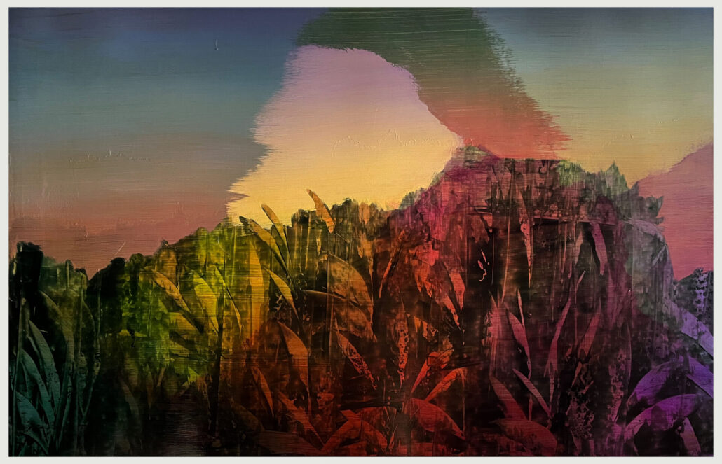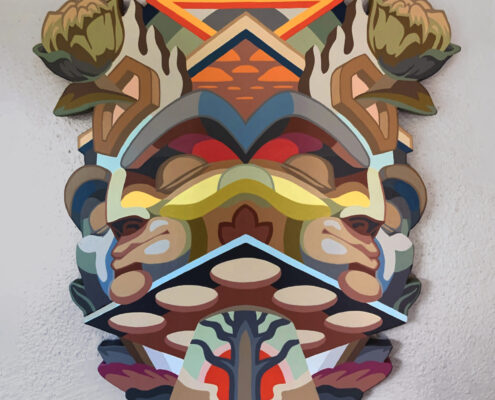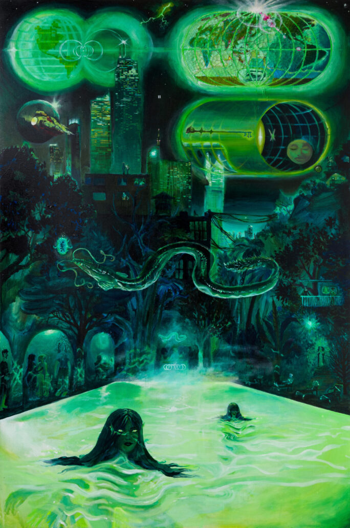 The collection of works in a variety of media, reveal other-worldly beauty with occasionally technological integration or imagery that hinders questions of environmental and societal tension, yet wrapped in the whimsical. The installation is united by a shared pulse of urgency and expressed vulnerability. Artworks span painting, sculpture, installation, and multi-media, celebrating the union and contrast of prosperity and surrender, grit and fragility, edge and release.